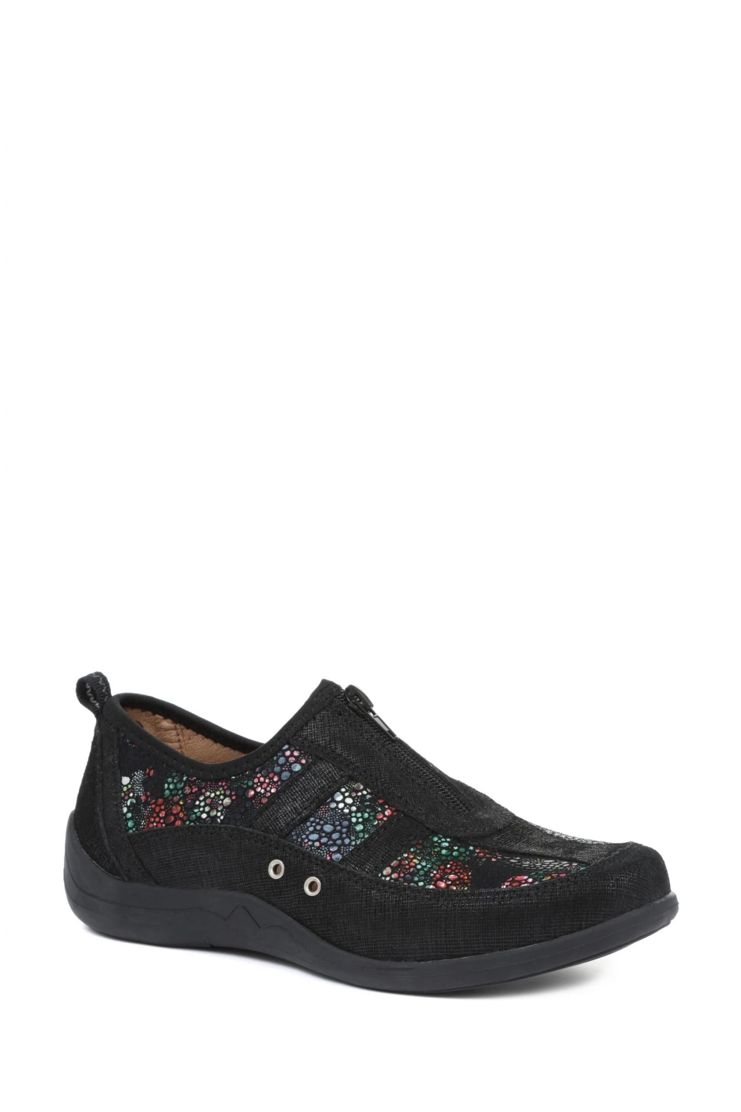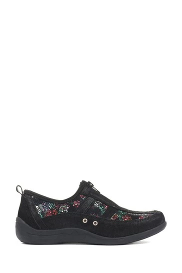 Slip-on trainers made with equal parts of style and comfort, our ladies trainers are crafted with high-quality leathers and decorated with flashes of floral print adding a colourful spark to the season. With their full leather linings and cushioned insole with arch support, you can slip straight into comfort, complete with a gripped traction sole these wide fit trainers are perfect for walking.