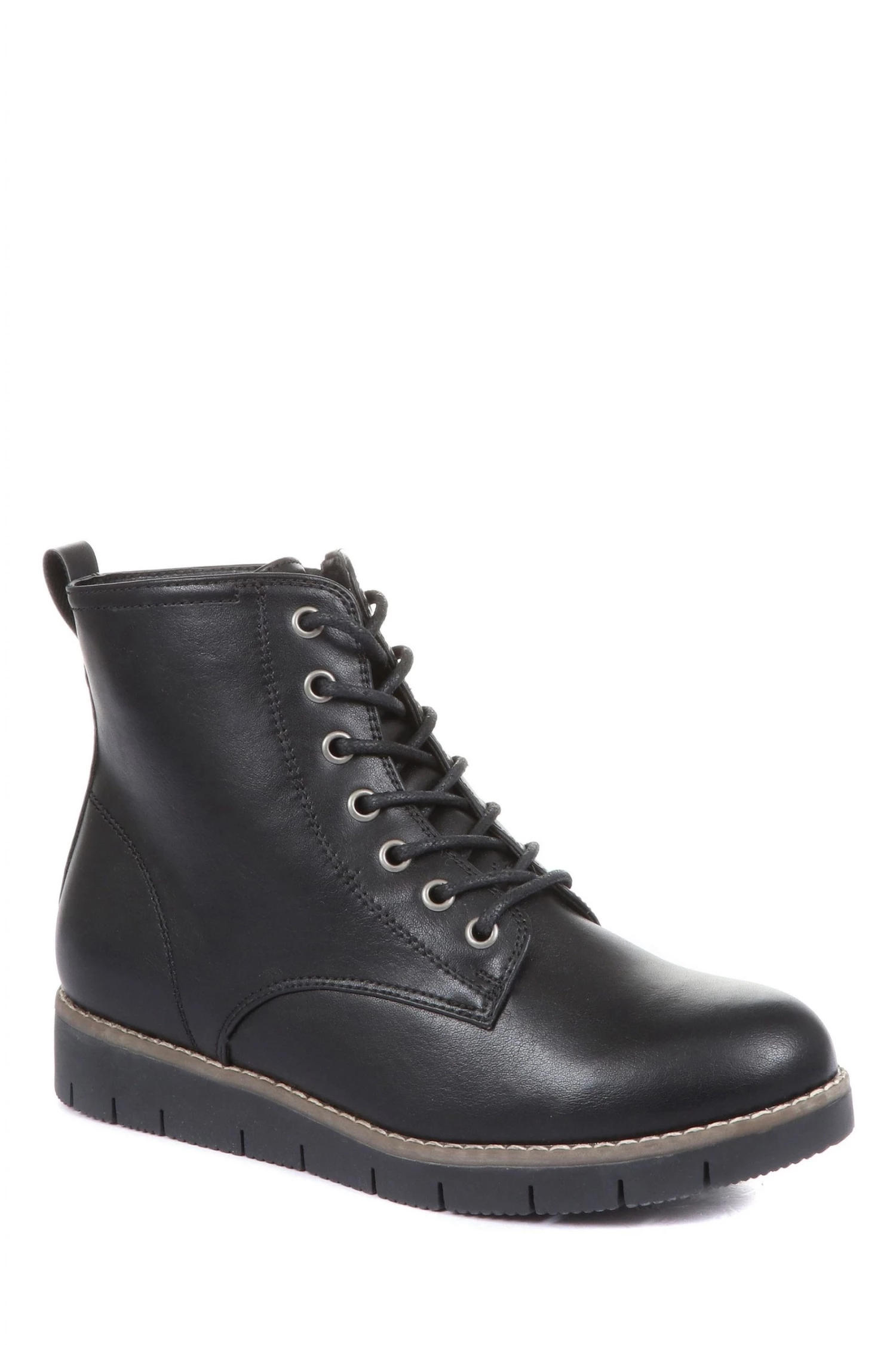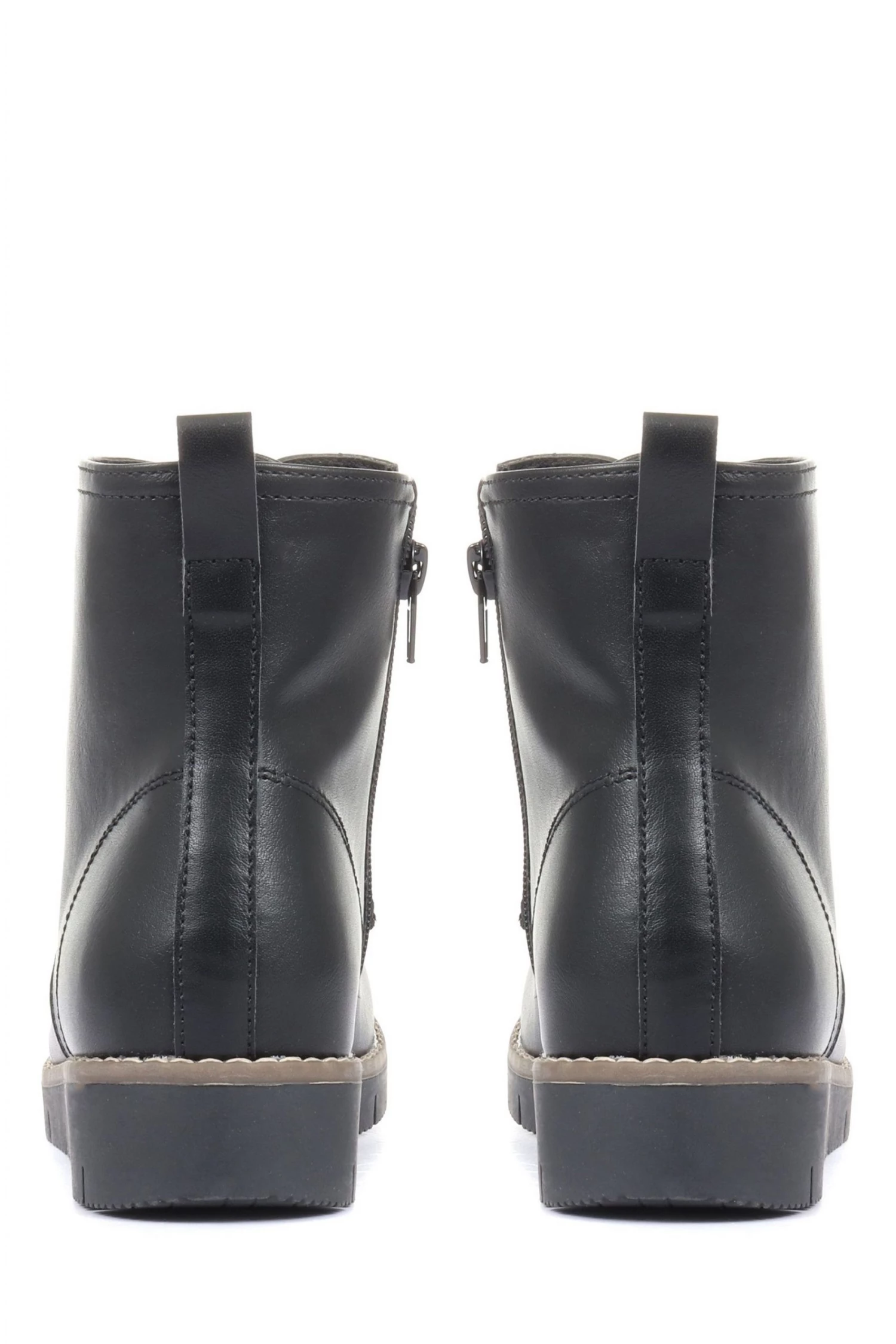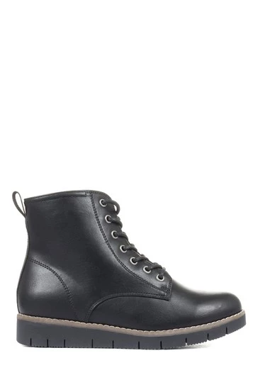 Classic and reliable, these ladies’ lace up boots will integrate seamlessly into any ladies’ capsule wardrobe with ease. Crafted from beautiful faux leather, the boots are imagined with a plain toe silhouette, interrupted only by the panel of lacing. Lined with soft leather textiles, the boots are secured with an inside zip for effortless wear.