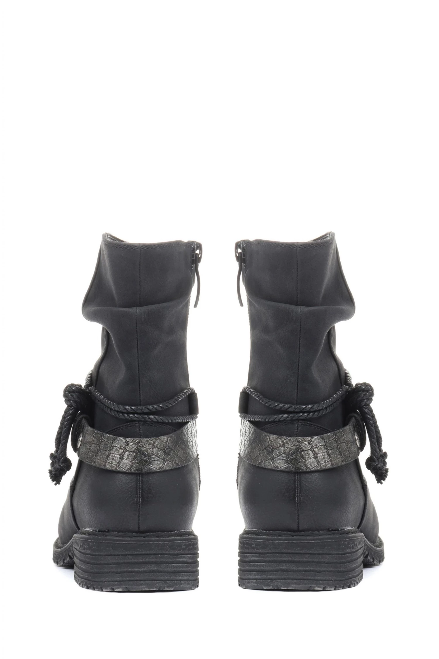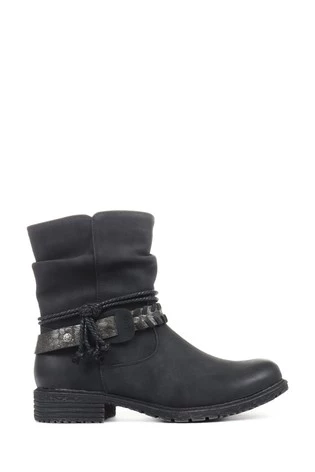 A comfortable boot that will go with everything, our ladies ankle boots will work for busy days and relaxing weekends. Styled with a slouch design, our flat boots are decorated with braided ankle straps. Lightweight in design and lined with super soft fleece lining to keep your feet warm and supported with comfort all season long, complete with full-length side zip fastening and deep-cushioned insole.