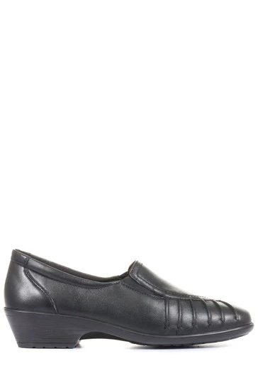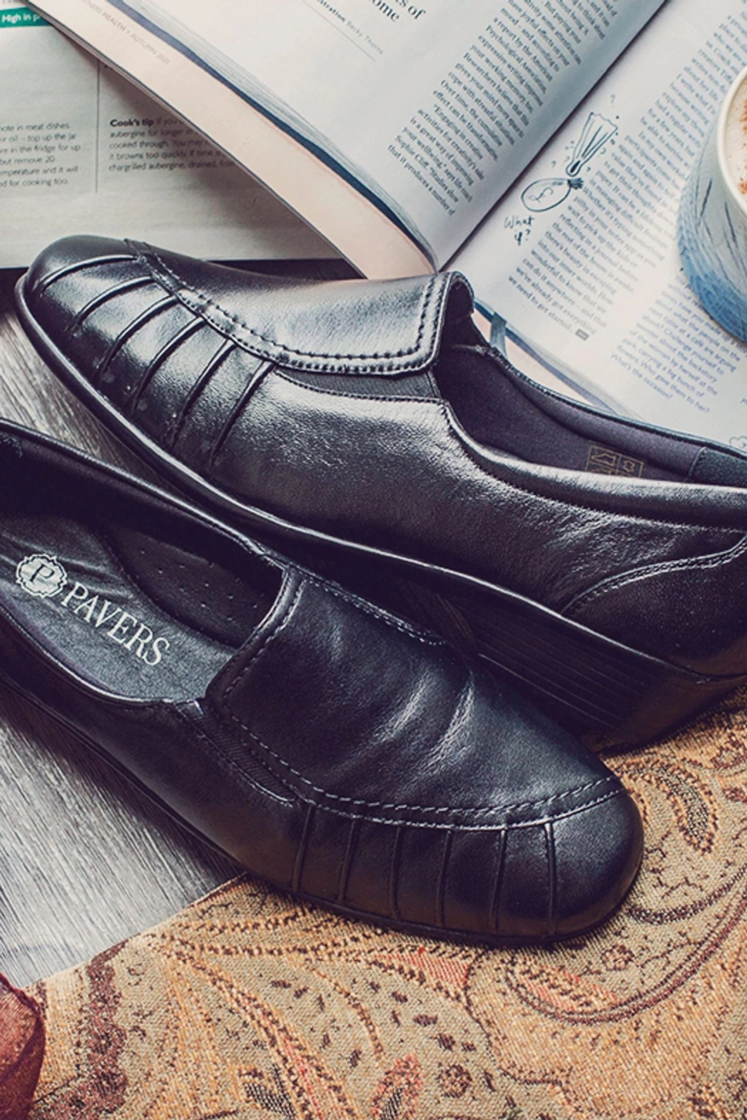 Super-soft to touch, with a wide comfort fit, these leather slip-ons are just what your feet have been longing for! Featuring elasticated vents for a roomier fit, a small heel for a little lift and ridged asymmetrical stripes for a striking on-trend look.