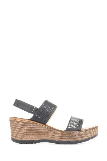 Get set to sparkle in the sun with our extra lightweight wedge sandals, decorated with intricate diamante embellishments, they’re the perfect adding a little glamour to your day. Made with a classic slingback design, these wedges feature a discreet touch-fastening strap for an adjustable fit and a soft cushioned foot-bed for supportive comfort. Finished with an extra lightweight and flexible wedge sole.