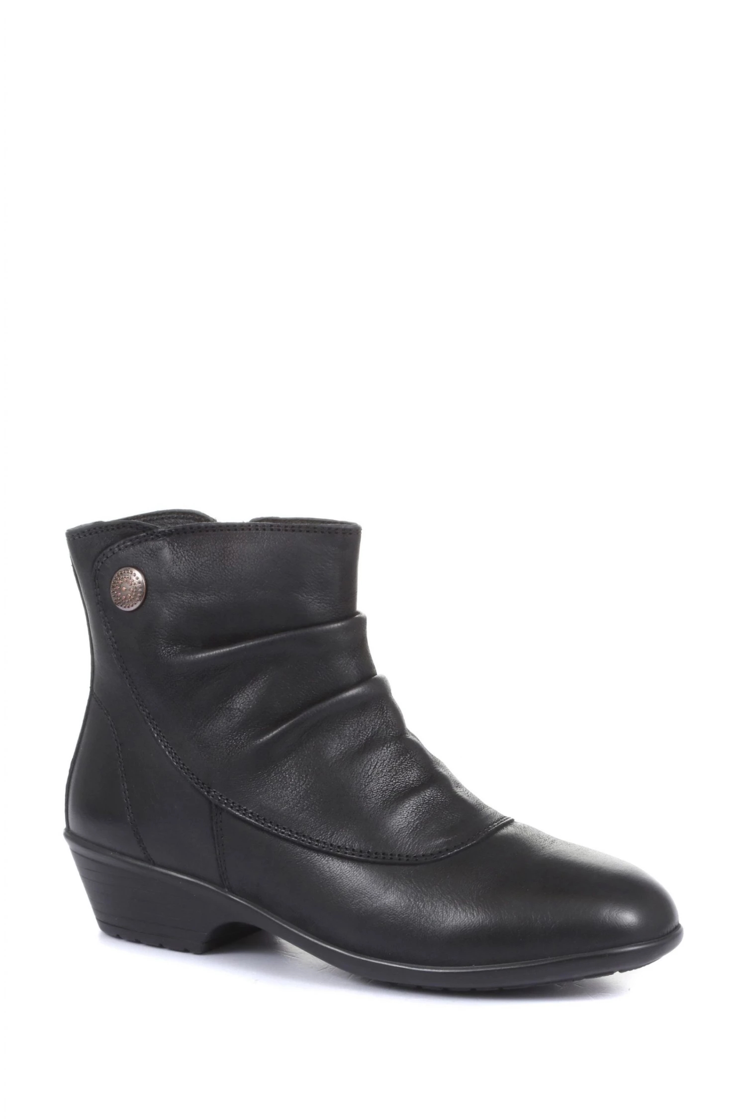 A must-have ankle boot for the changing seasons, our leather ankle boots are created with a classic ruched design that gives relaxed, casual appeal to your looks. Fitted with a side zip fasten for easy pull on wear and a cushioned leather footbed to ensure lasting comfort.