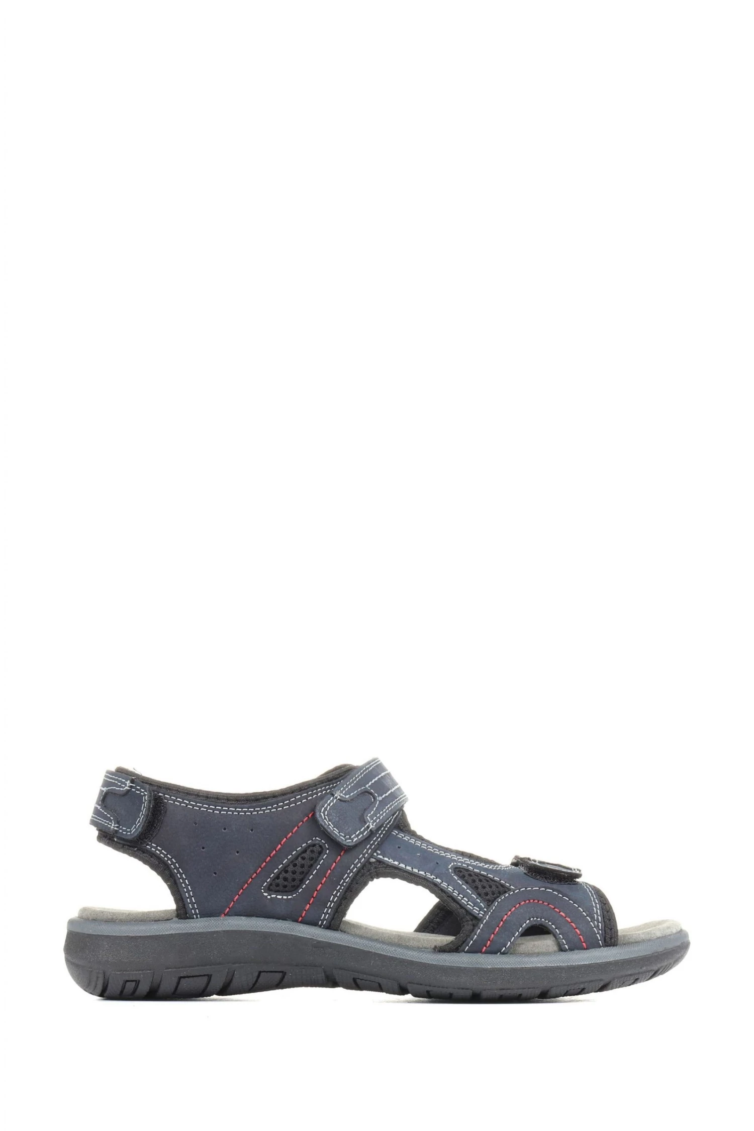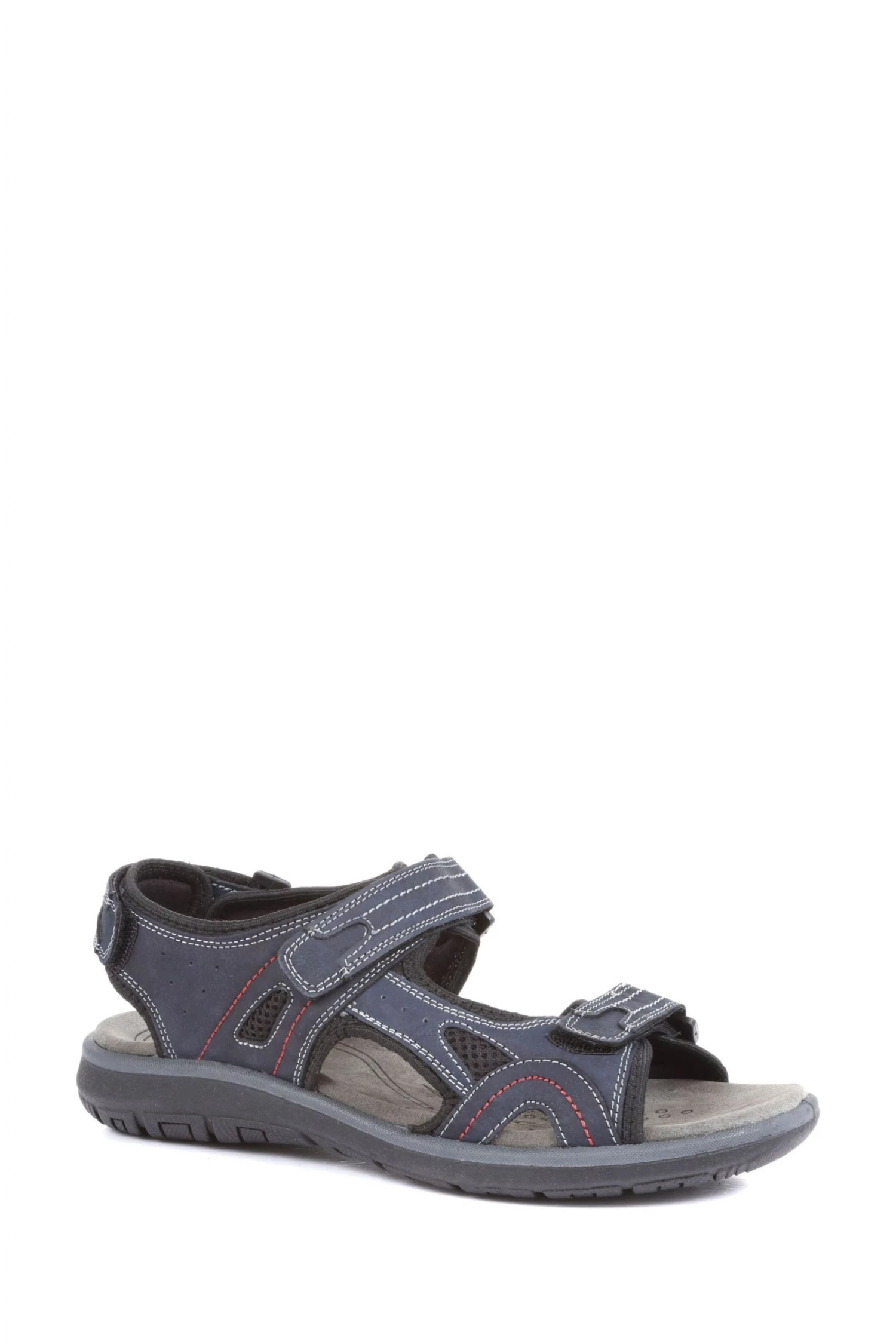 These fully adjustable men’s sandals feature three touch-fasten straps at the forefoot, ankle, and heel for a comfortable, secure fit. Based on a breathable comfort footbed with added arch support, these lightweight sandals will keep your feet feeling fresh all day long. Featuring a soft, flexible sole, these sandals won’t restrict your movement.