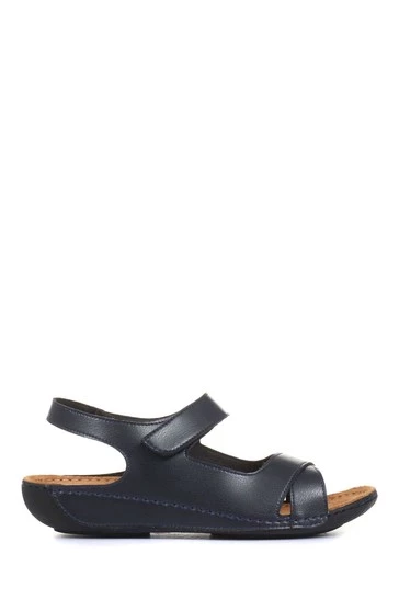 These sandals feature a soft, leather insole and a comfortable touch-fasten strap. The crossover detailing and low wedge make this a go-to style for warm summer days.