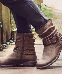 A comfortable boot that will go with everything, our ladies ankle boots will work for busy days and relaxing weekends. Styled with a slouch design, our flat boots are decorated with braided ankle straps. Lightweight in design and lined with super soft fleece lining to keep your feet warm and supported with comfort all season long, complete with full-length side zip fastening and deep-cushioned insole.
