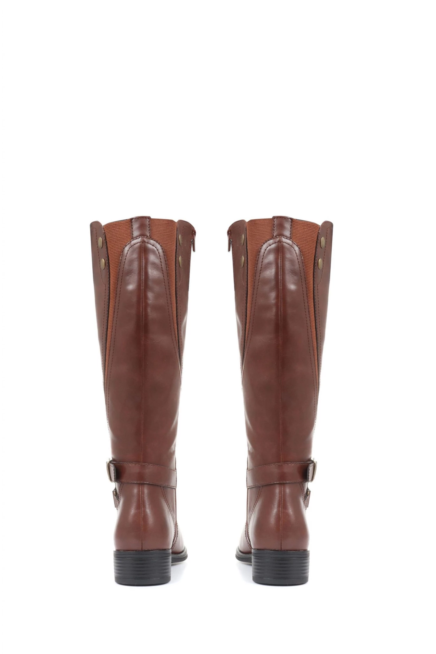 Chic and tall, these ladies boots are beautifully classic in design and flattering in fit. Imagined in a sleek and streamlined profile, the boots are decorated only by an ankle strap with a metallic toned buckle. Secured with a full length inside zip, the boots feature a duo of swirling elastic panels, which aid flexibility and create an elegant silhouette.