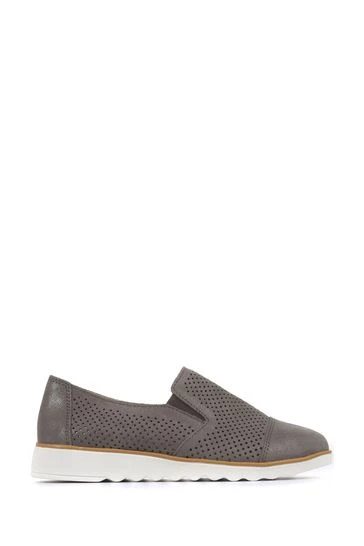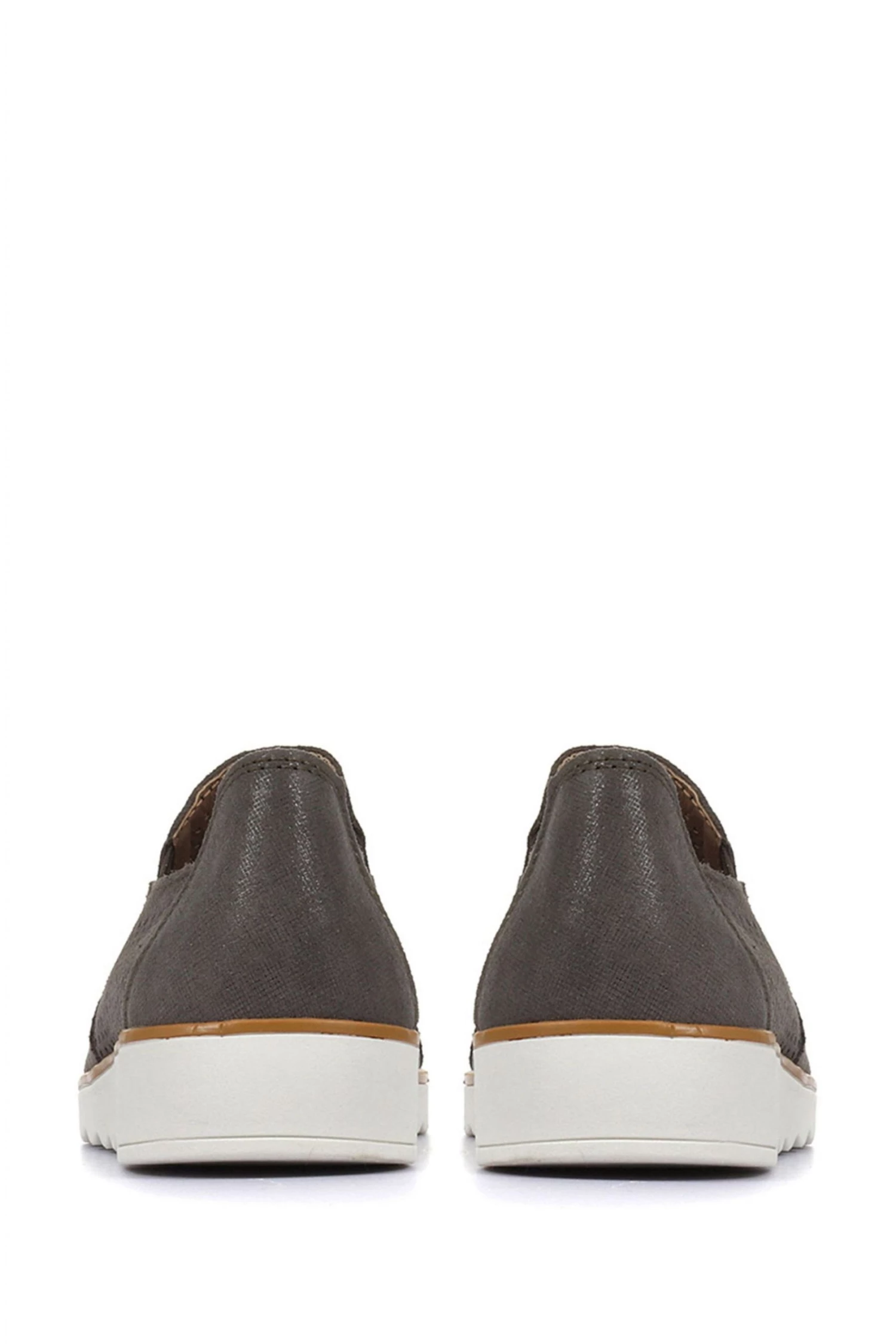 A contemporary twist of a classic slip-on style, metallic leather is decorated with an eye-catching cut-out design. Resting on an extra light contrast sole it adds a shimmering option for your dressed down days, a metallic toe cap completes the revitalising spring style.