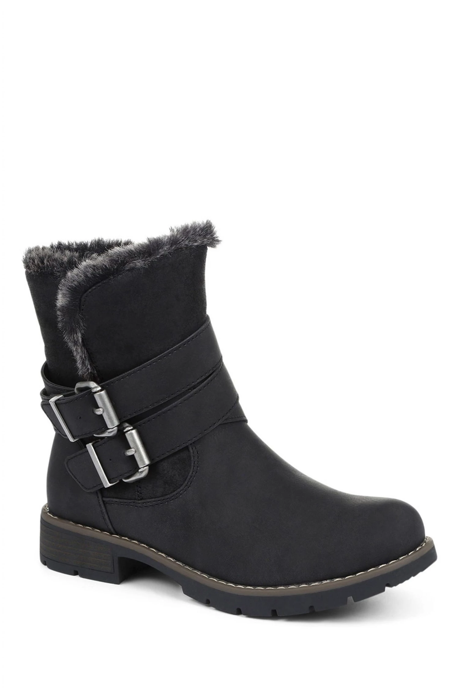 Take on the cold weather in style, the slouch ankle boots are designed with a duo of ankle straps with buckle fasten detailing. The boots sit on deep gripped sole with lightweight support, the insole gently cushions the foot and the super soft faux-fur ankle cuff gives excellent insulation through the chilly days.