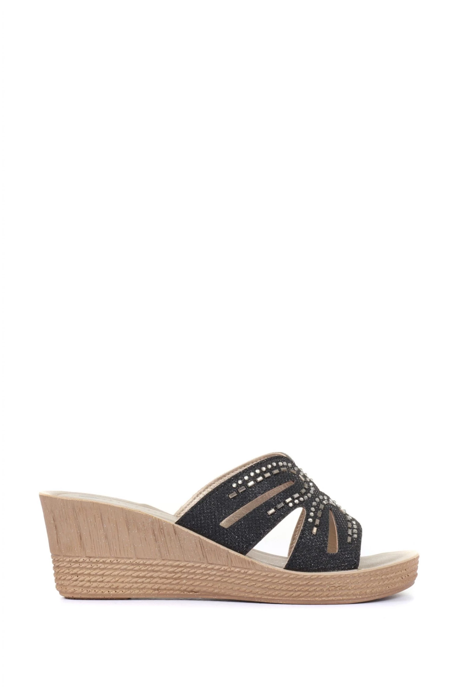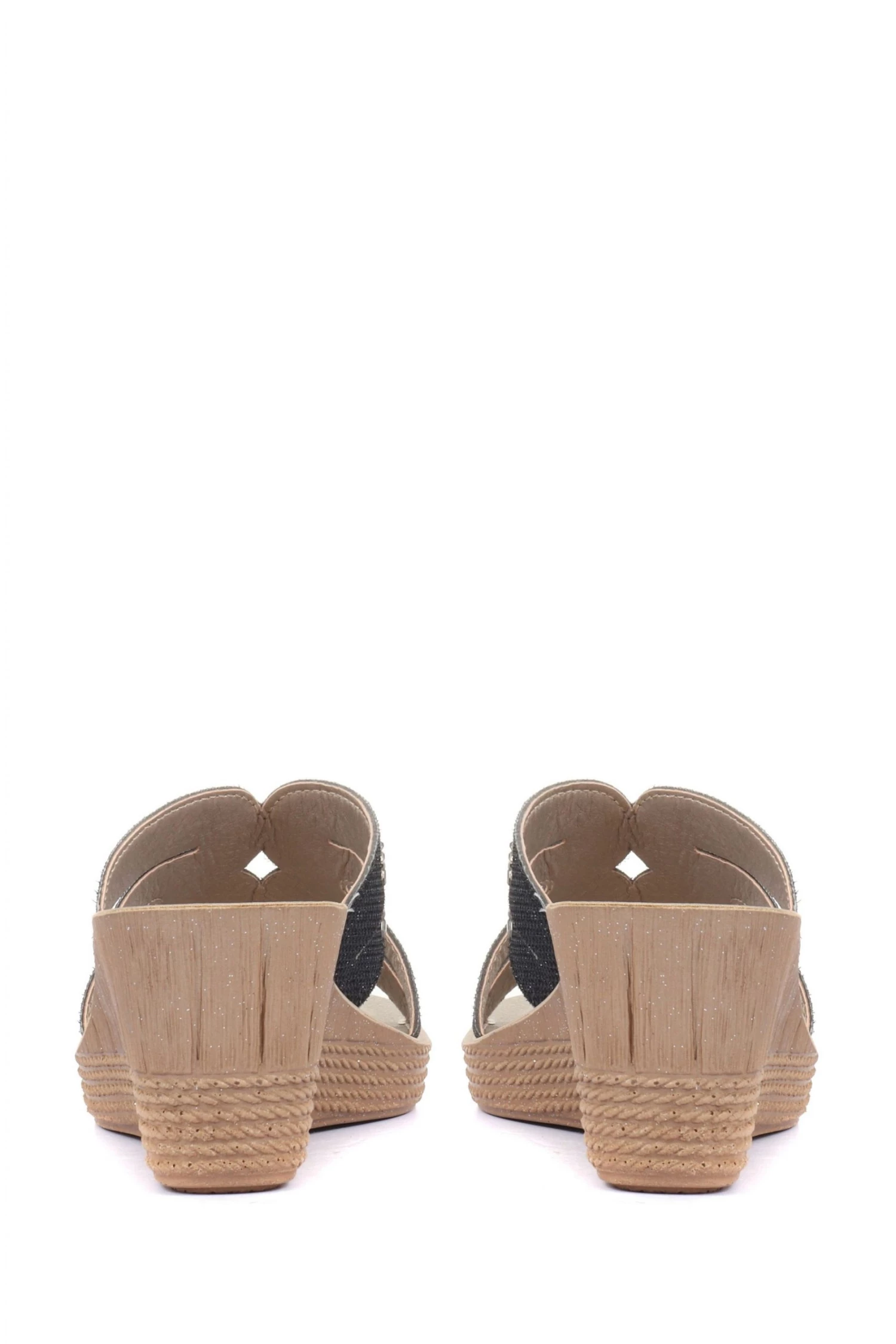 Give your going out looks a little lift by slipping on these wedge heel mule sandals. Elegantly embellished, these wedge sandals will give a glamorous twinkle to your summer wardrobe, equipped with a cushioned insole and lightweight sole to ensure your comfort.