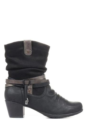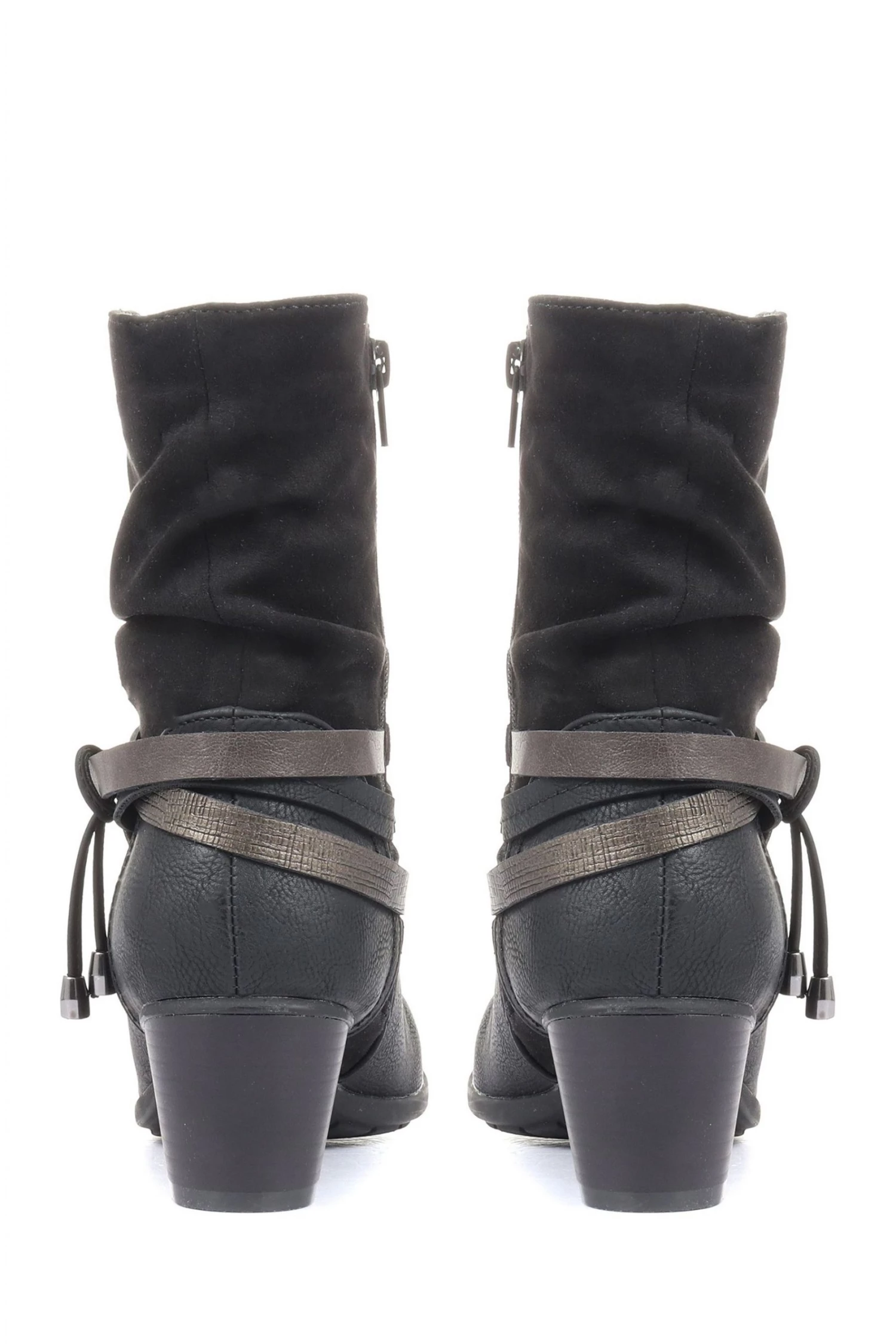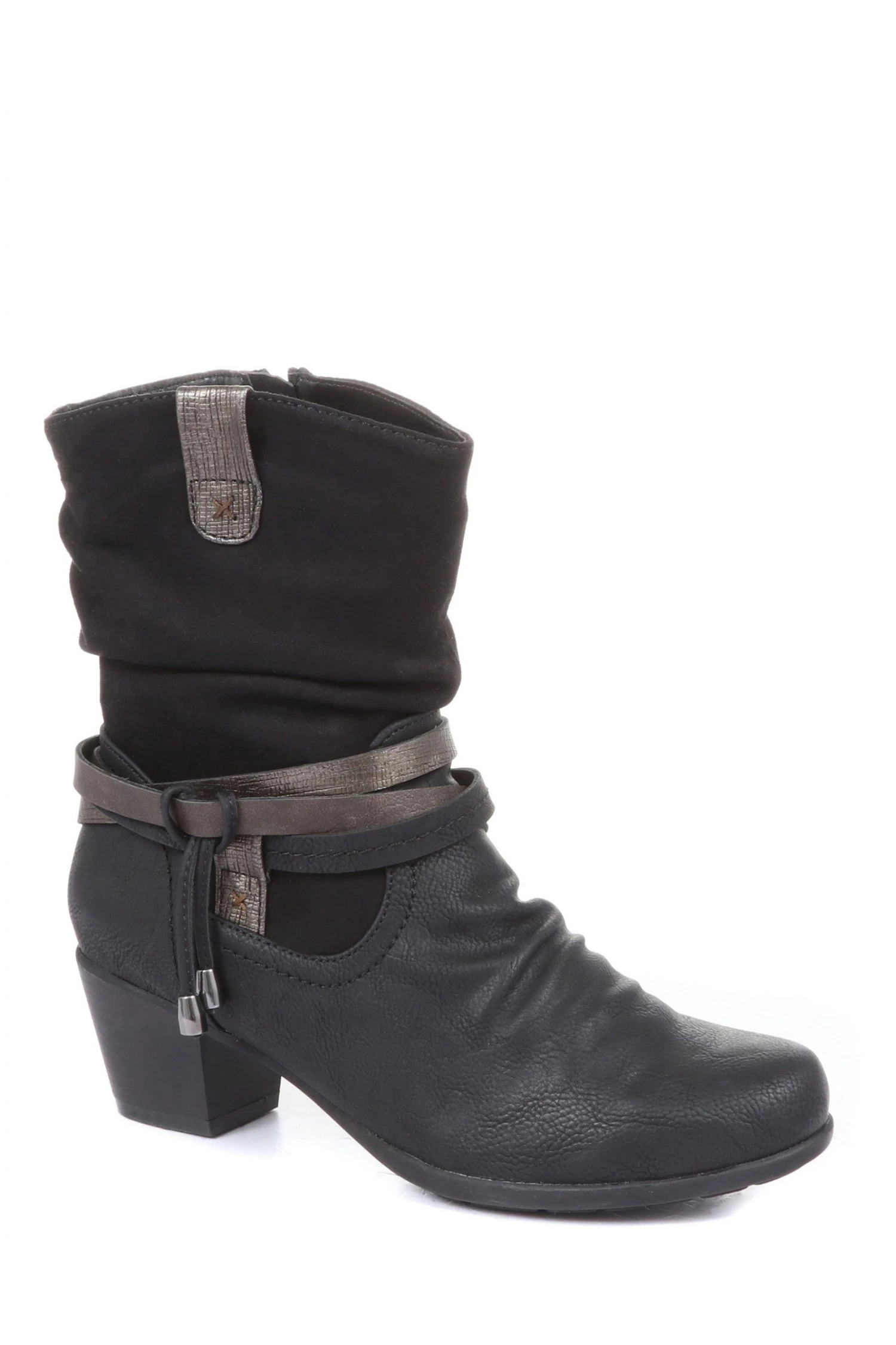 Inspired by a biker design, the mid calf boot features a trio of straps that delicately wraps around the foot. Set on a short stacked heel the boot lends reference to the cowboy boot trend, created with a full length side zip fastening, with soft faux fur linings and a cushioned footbed.