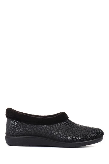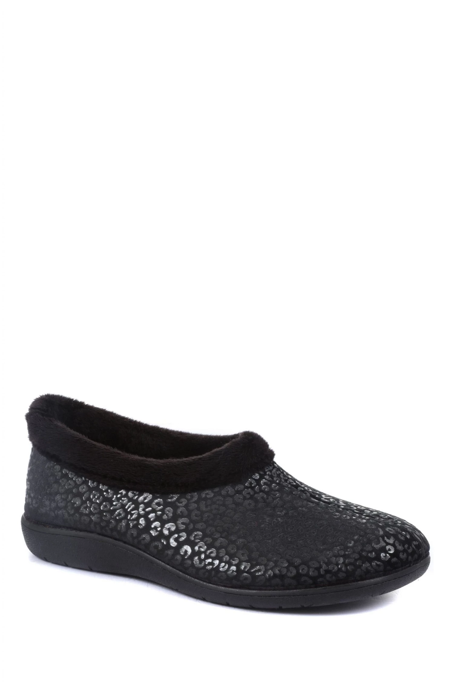 With fluffy trims and cosy linings, these slippers promise endless comfort for the winter months. Made with an easy slip on design, their full slippers are set on a sturdy and gripped sole that will step you effortlessly and confidently through the day. Decorated with intricate leopard print detailing.