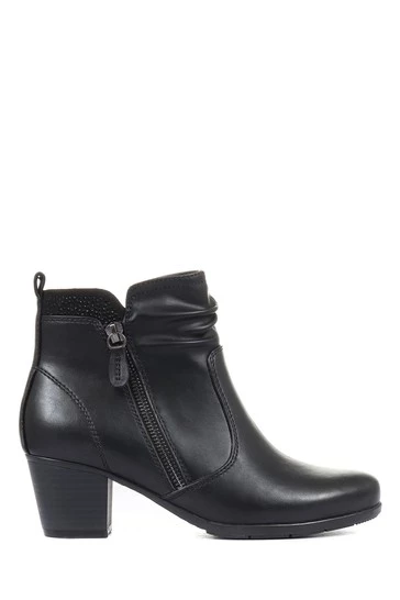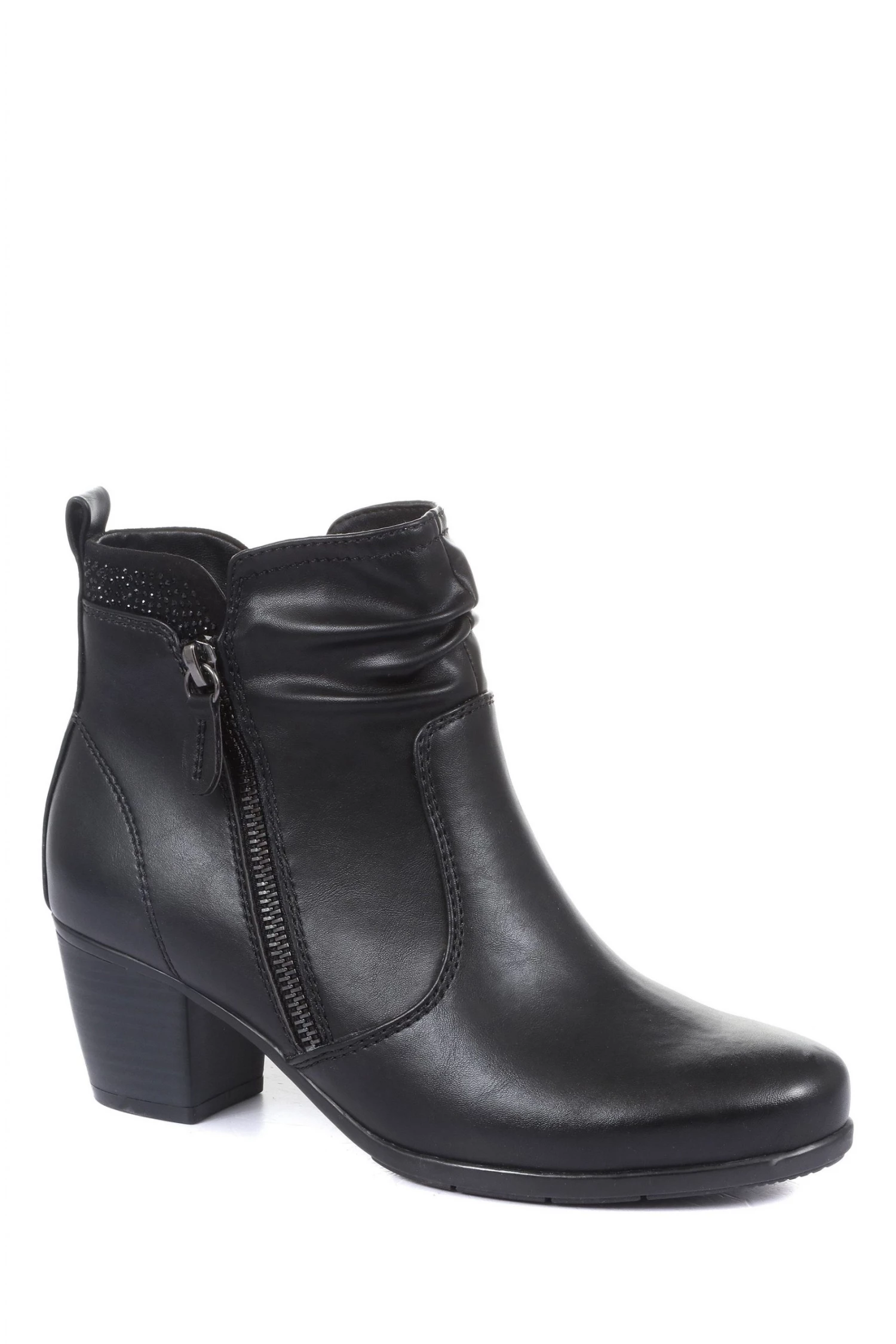 Elegant and sophisticated, these ladies’ ankle boots are the perfect addition to any wardrobe. Offering endless styling opportunities, the boots can be dressed up or down for any occasion with ease. Crafted from smooth faux leather, the boots feature a decorative zip on the outer side, and a discrete functional zip on the inner side for easy put on. Poised upon a block heel for a comfortable boost of height, the boots are finished with a touch of ruching for a contemporary touch.