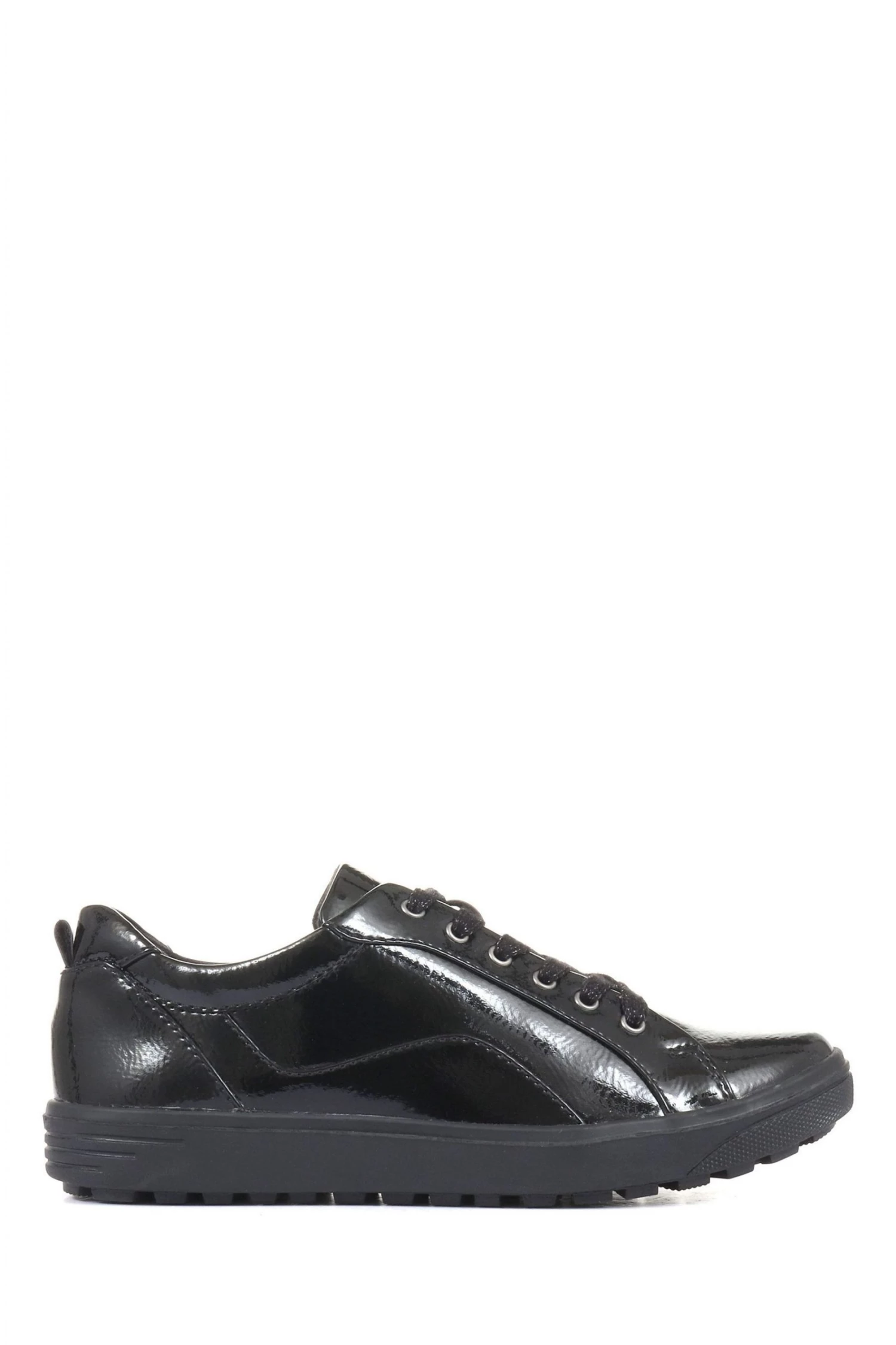 A glamorous take on the classic trainer, these ladies’ sneakers are imagined in a simple and streamlined low cut silhouette. Perfect for pairing with all of your casual looks, the elegant trainers add a touch of polish to jeans, and add a casual edge to tailored trousers. Imagined in a traditional lace-up profile, the trainers are finished with a high shine look, perfect for adding a touch of sophistication.