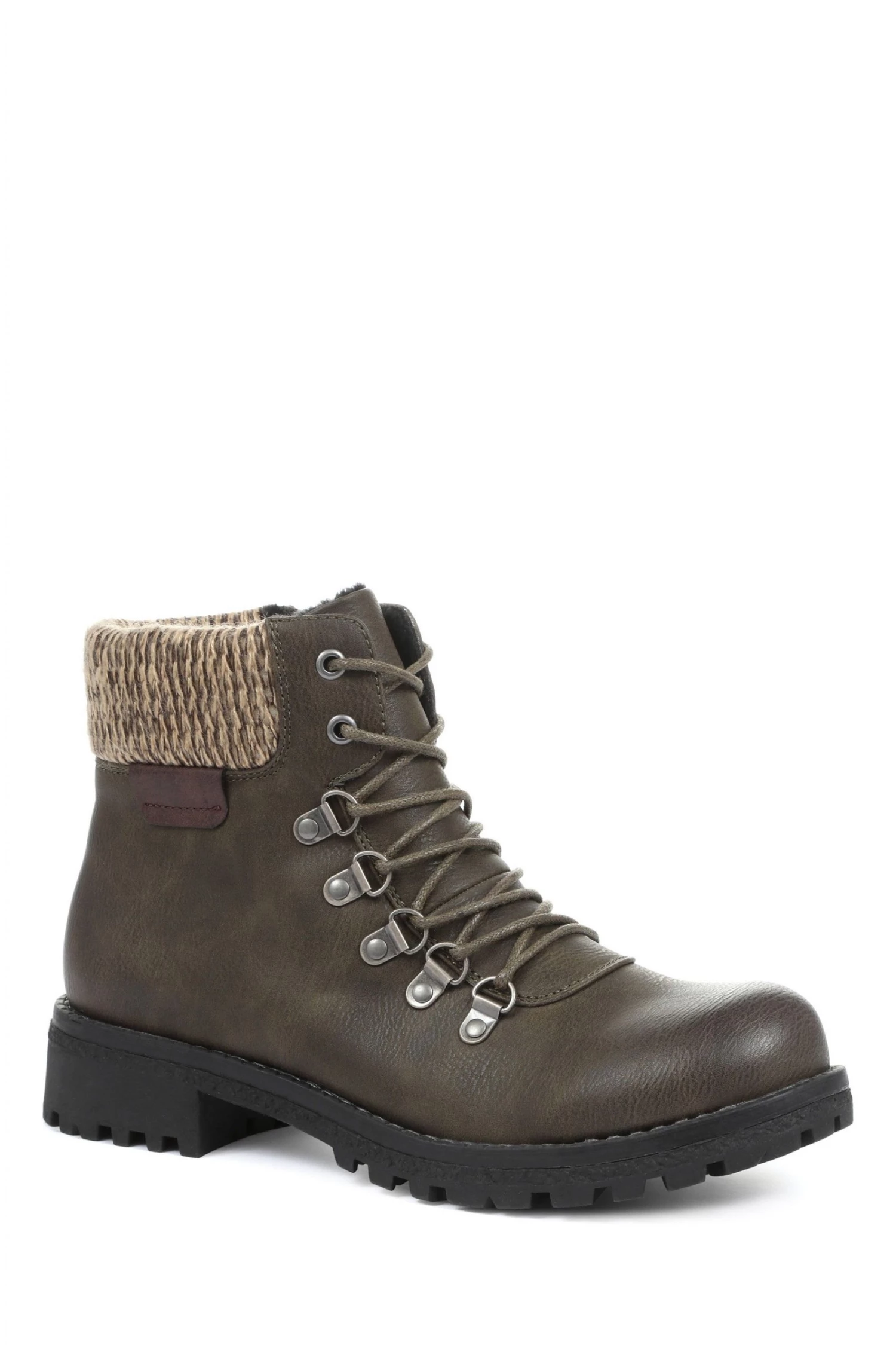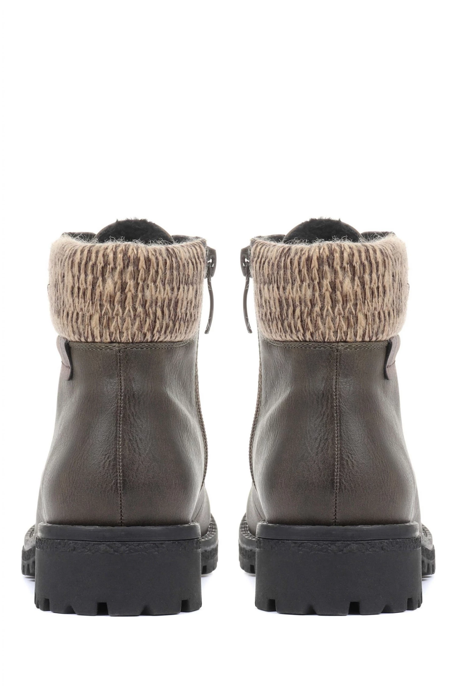 Tackle the trail with snug, cosy comfort our lace-up ankle boots take inspiration from the classic hiker boot trend. These sturdy ankle boots provide excellent support and cushioning around the ankle with its knitted cuff whilst the deep-cushioned footbed ensures excellent underfoot comfort, complete with a deep cleated commando tread sole and simple side -zip fastening.