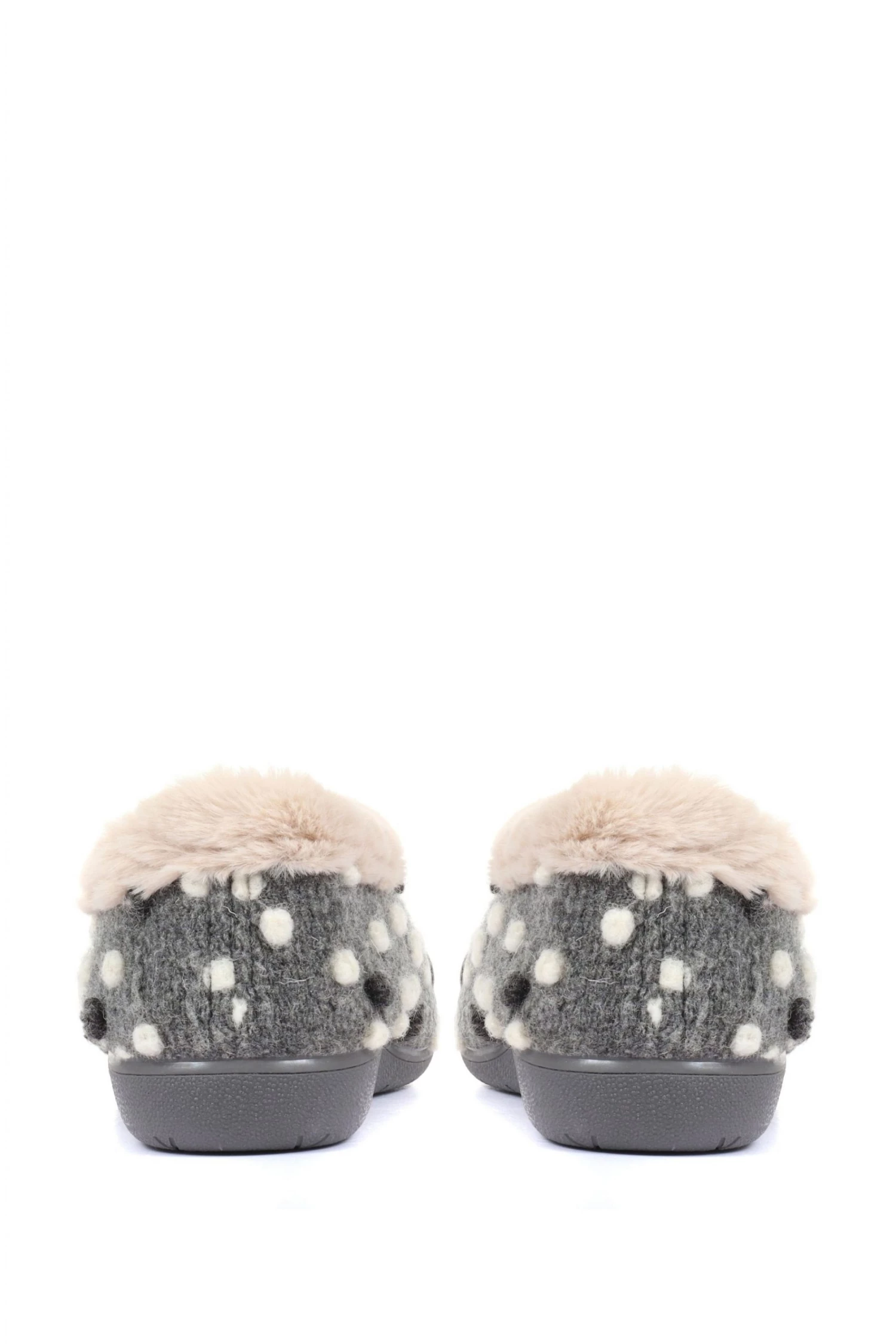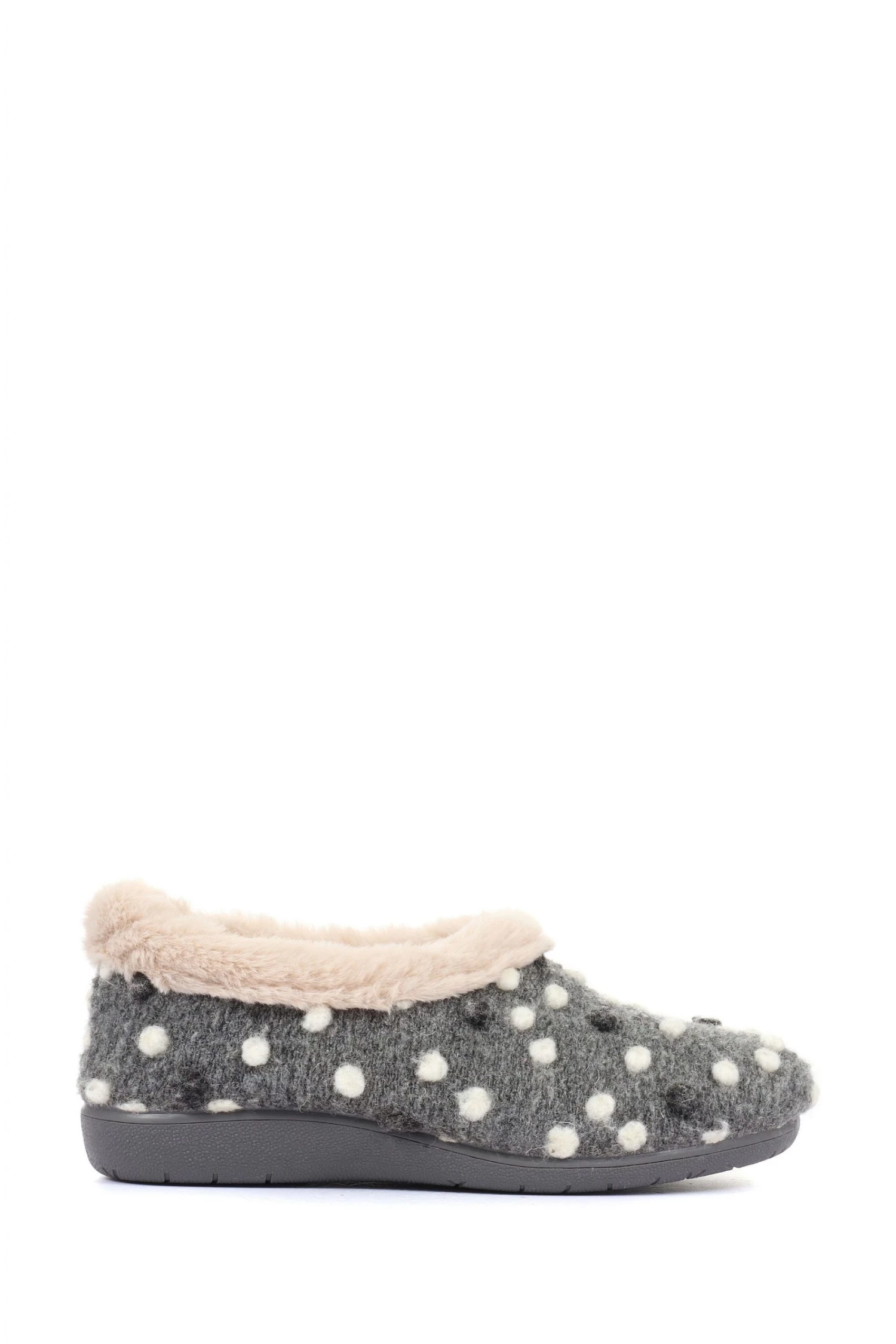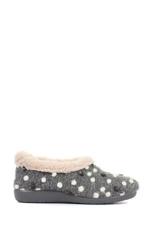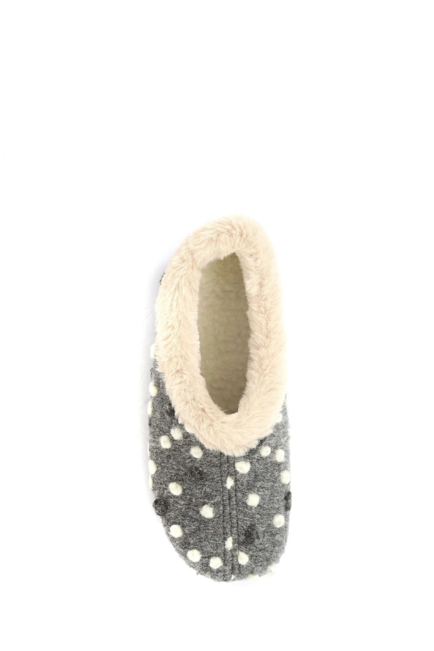 A full woolly slipper crafted with supreme materials to see you through the colder months. Lined with supersoft faux fur, adorned with a felted bobble decoration and complete with a gripped rubber sole to ensure stability.