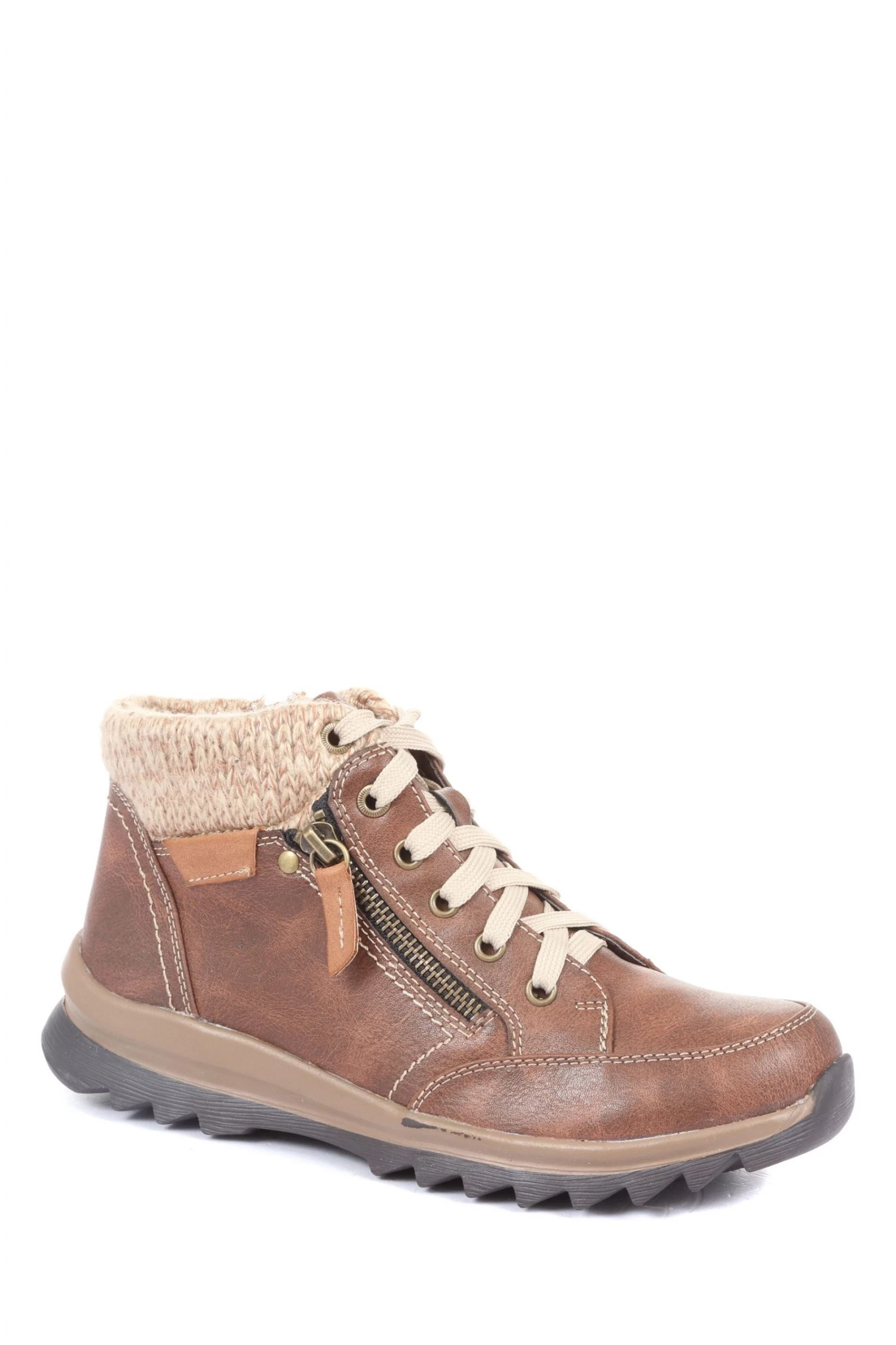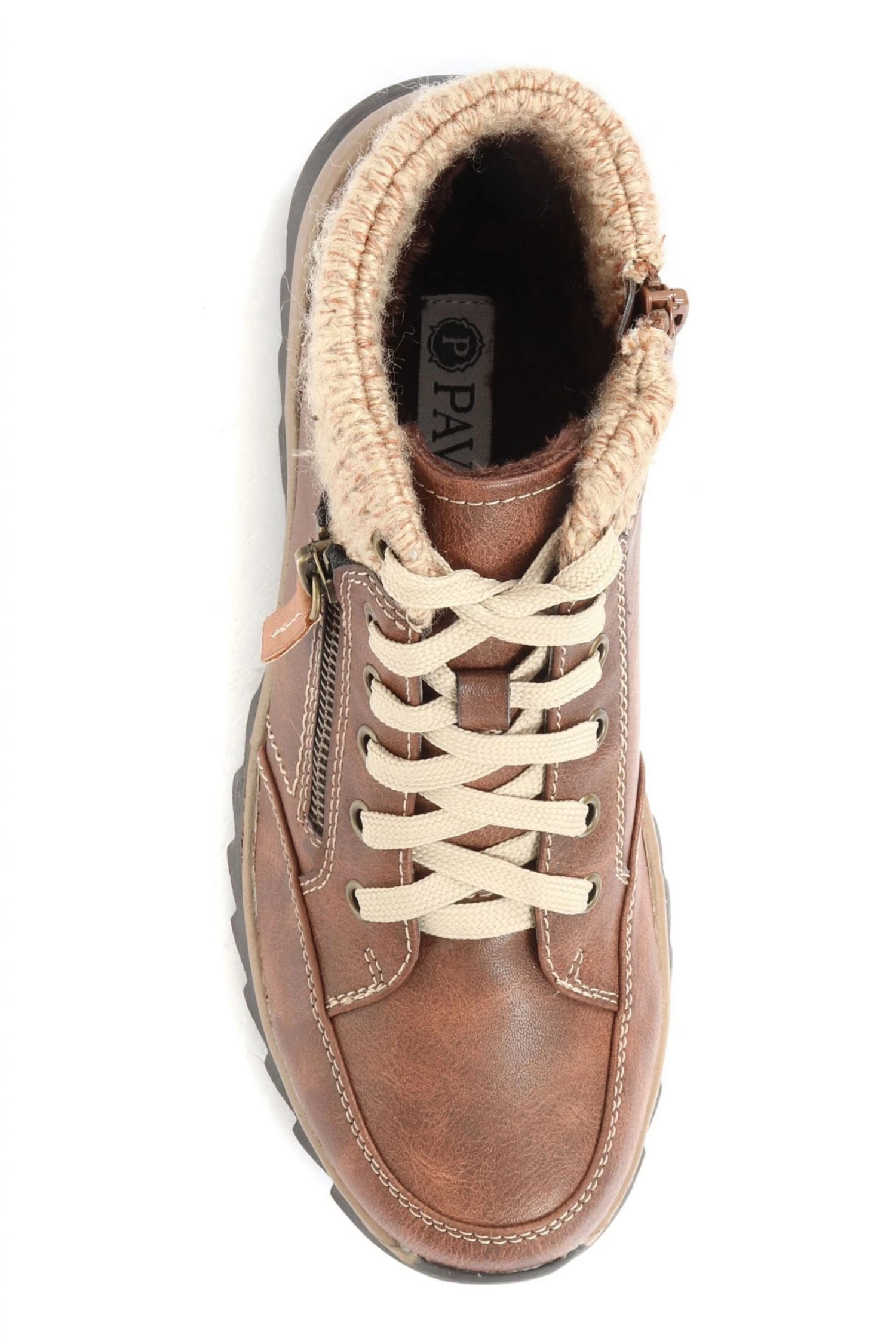 Stay warm and cosy throughout the cooler months with these classic lace up ankle boots by Pavers. Imagined in a compact silhouette, the boots are crafted from beautiful faux leather. Decorated with a faux zip, the boots are topped with a warm knitted cuff for a snug finishing touch.