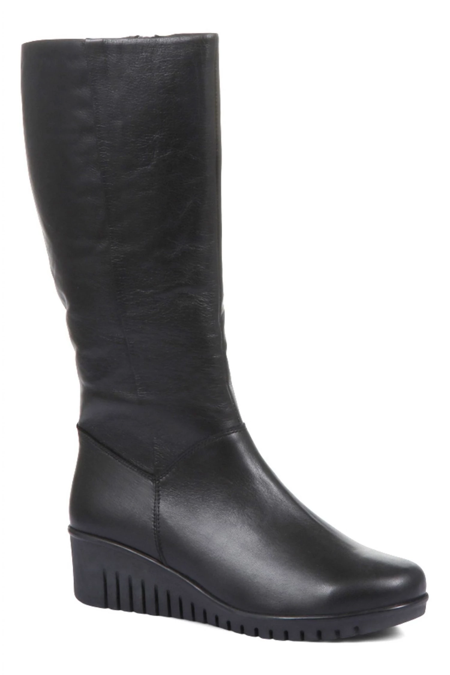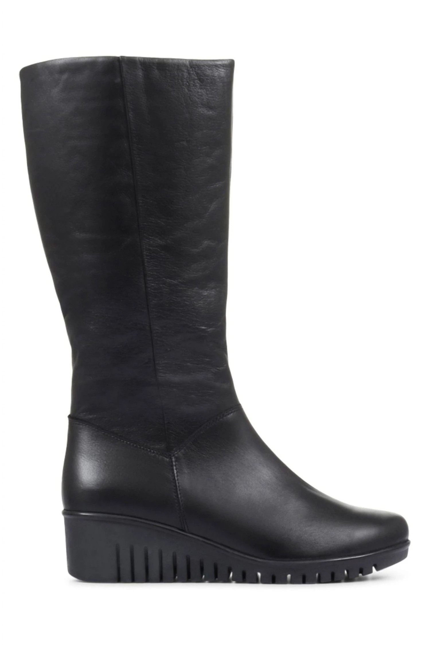 Sitting on a low wedge heel these leather knee-high boots give a refreshing, modern update to a classic long boot style. Crafted in soft leathers, the boots feature padded linings and a deep-cushioned insole, complete with full-length side zip fastening and a lightweight, gripped sole.