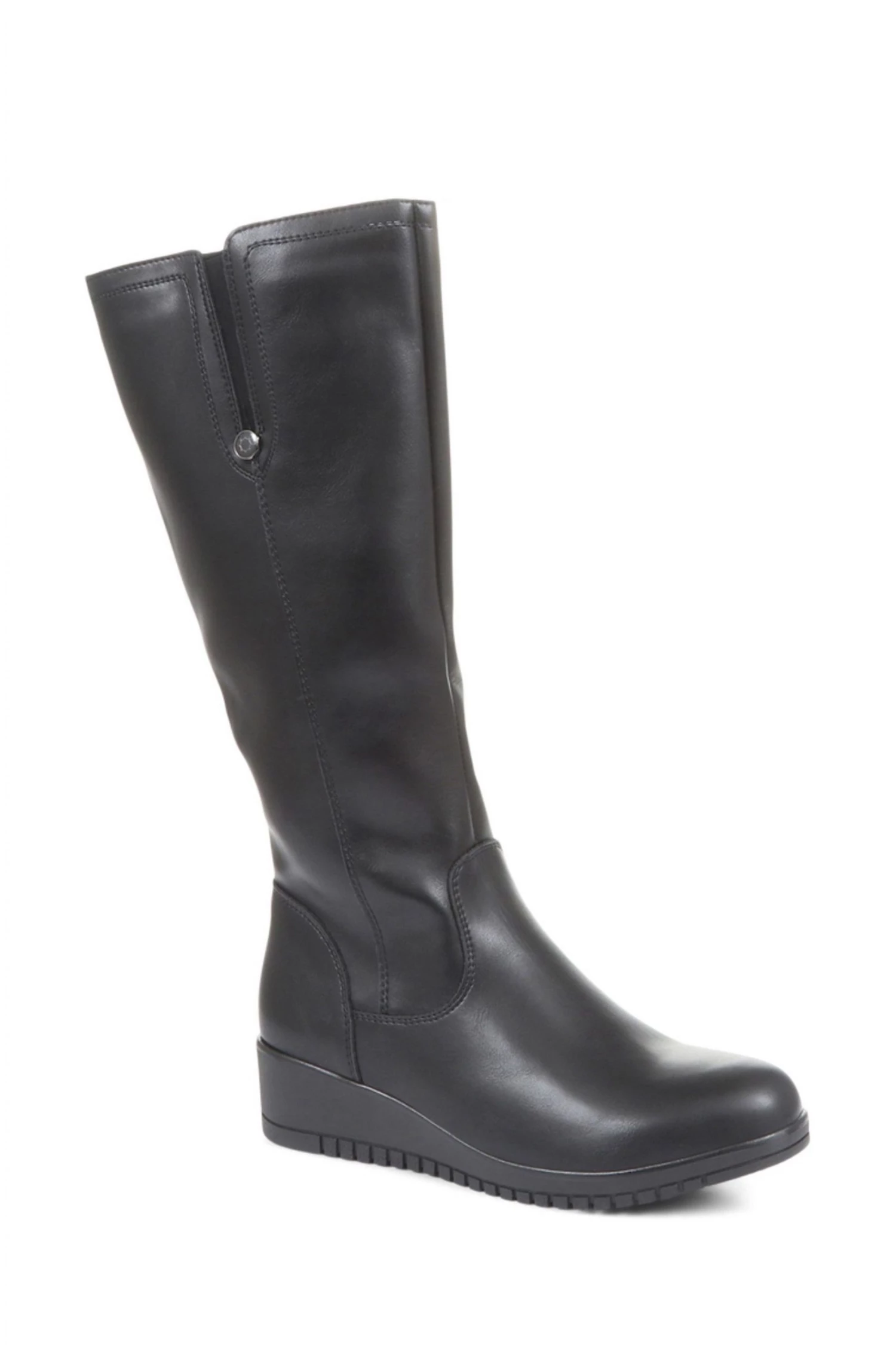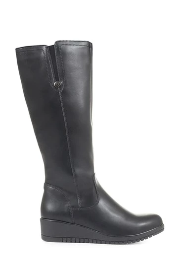 Made with a practical wedge heel, these knee high boots are crafted with a sleek upper that’s perfect for layering through the chilly months. The knee boots feature a subtle elastic vent at the top of the calf which promises extra flexibility and a full length side zip fastening for easy pull on wear. Internally the soft linings and plush footbed ensure your feet feel comfortable throughout the day.