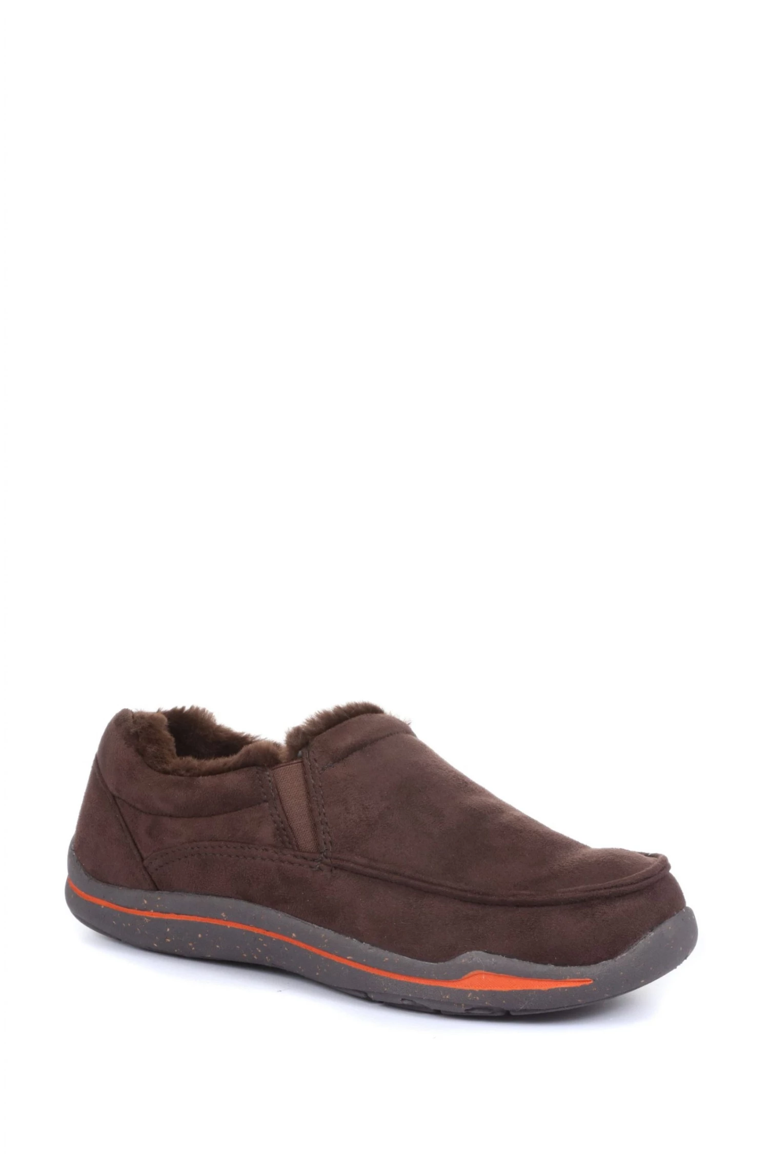Comfort and classic style are embodied in these men s full slippers. Imagined in a loafer-inspired silhouette, the slippers feature deep elastic inserts for effortless wear and a flexible fit. A soft plush lining gives a luxurious full-foot feeling, whilst a robust sole adds traction underfoot.