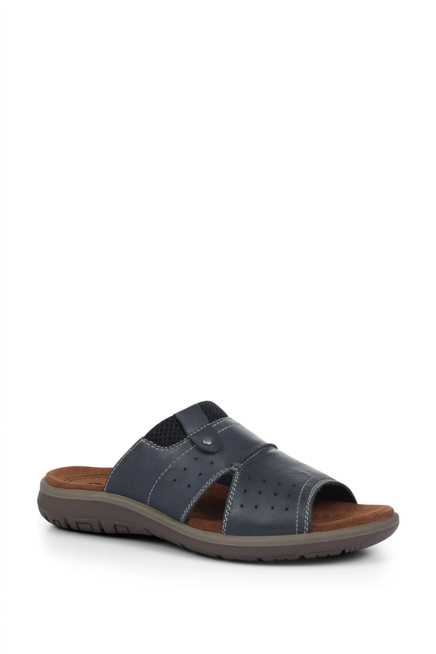 Soft and flexible, these men’s slip on sandals offer superior underfoot comfort and essential breathability with their cushioned and perforated insole. So easy to slip on, these sandals feature a small elastic insert for added flexibility.