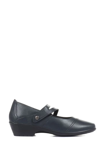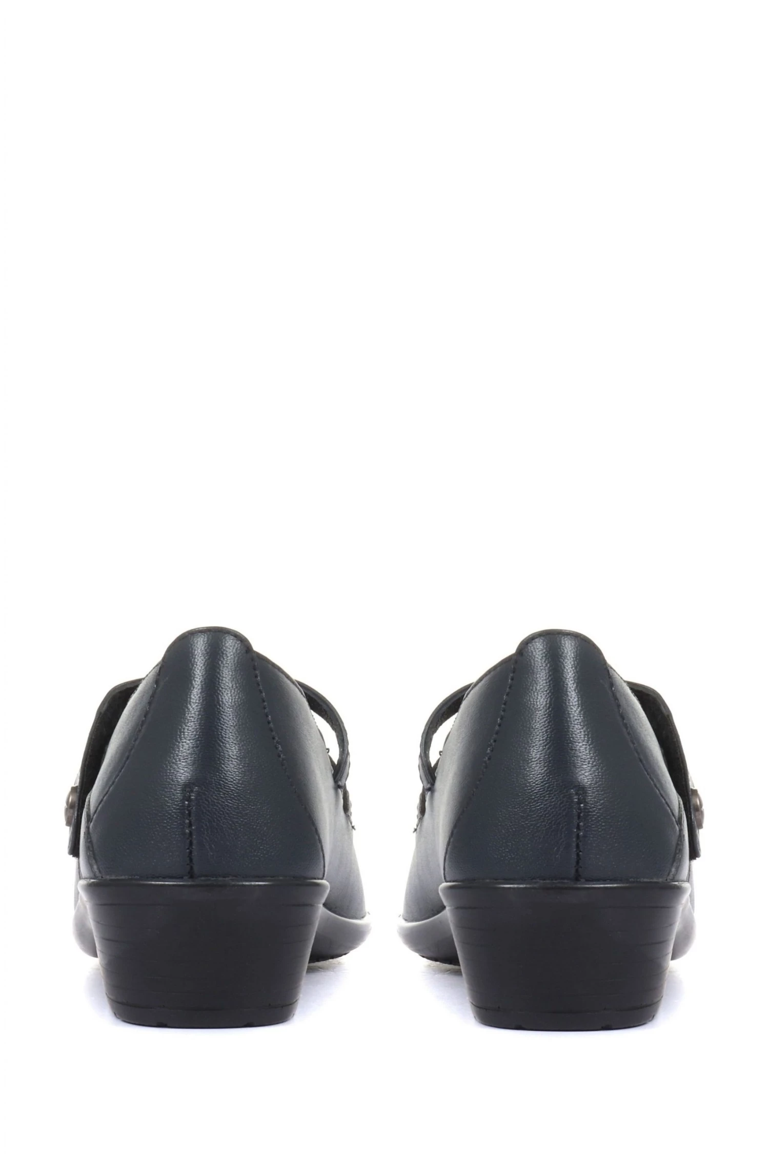 A Mary Jane pump with a twist, a great shoe for work or play, a slight heel and a unique double cross over strap with metallic button embellishment holds the foot in supportive place, and for an added touch, a quaint dual running stitch pattern flows across the top of the toes.