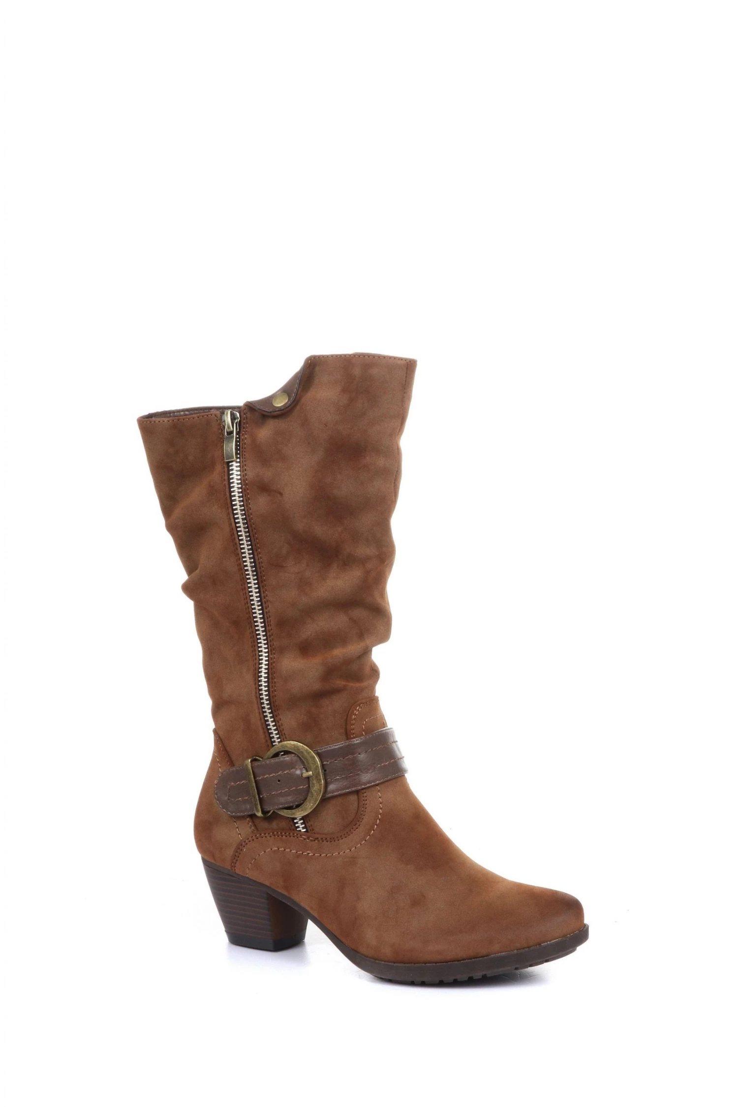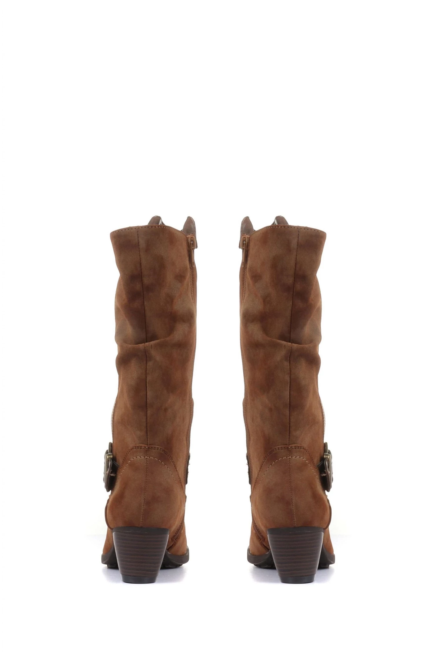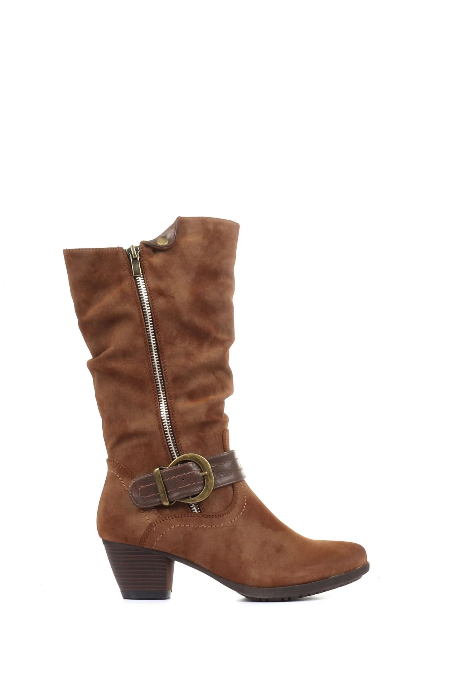 A smart addition to your casual style, the calf boot sits on a short block heel to elevate your everyday wear. Crafted with a mix of synthetic leathers and detailed with an eye-catching buckle strap with decorative faux zip, featuring soft lining for extra snug during chilly days.