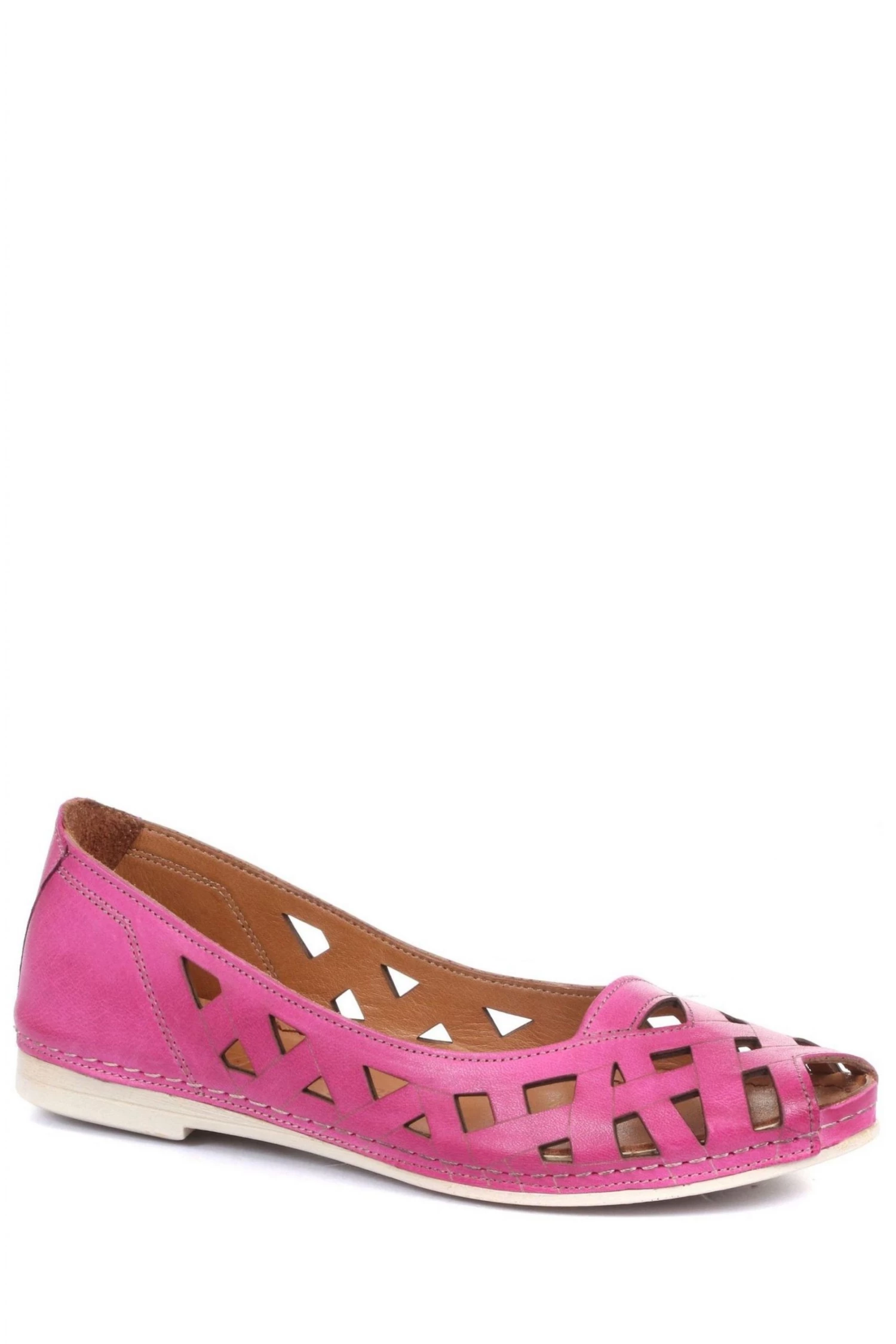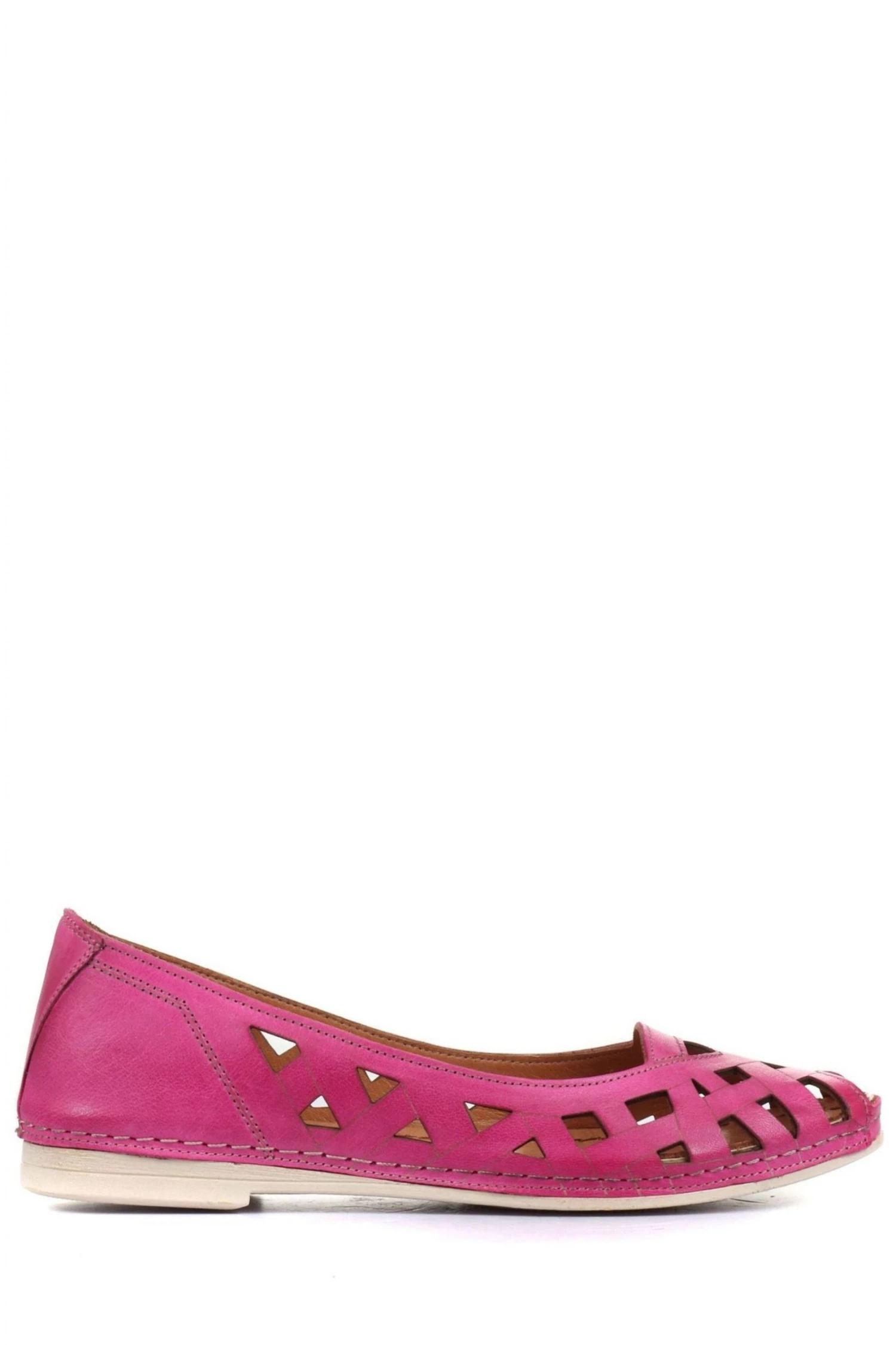 Understated, elegant and timeless, our leather ballerina pump is a classic summer staple, perfect for everyday styling. Crafted with a strappy design that gives a little less coverage than your average pump, poised on extra flexible sole with cushioned leather footbed.